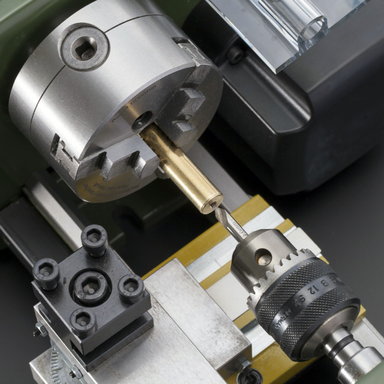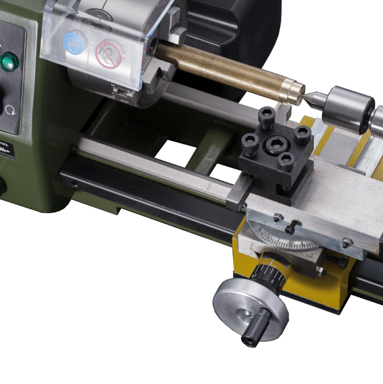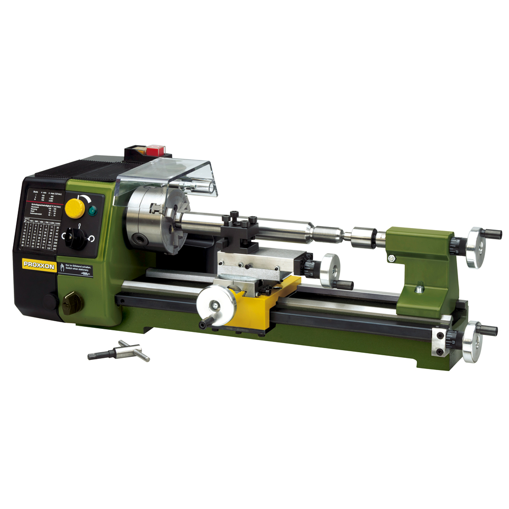 Υψηλής ποιότητας τσοκ 3 σιαγόνων σύμφωνα με το DIN 6386 Κλάσης 1 (ομόκεντρη αντοχή 0,04mm). Χωρητικότητα μέσω αντίθετων σιαγώνων από 2 - 75mm. Περιλαμβάνεται οδηγός τσοκ τόρνου με ασφαλές κλείσιμο λειτουργίας.